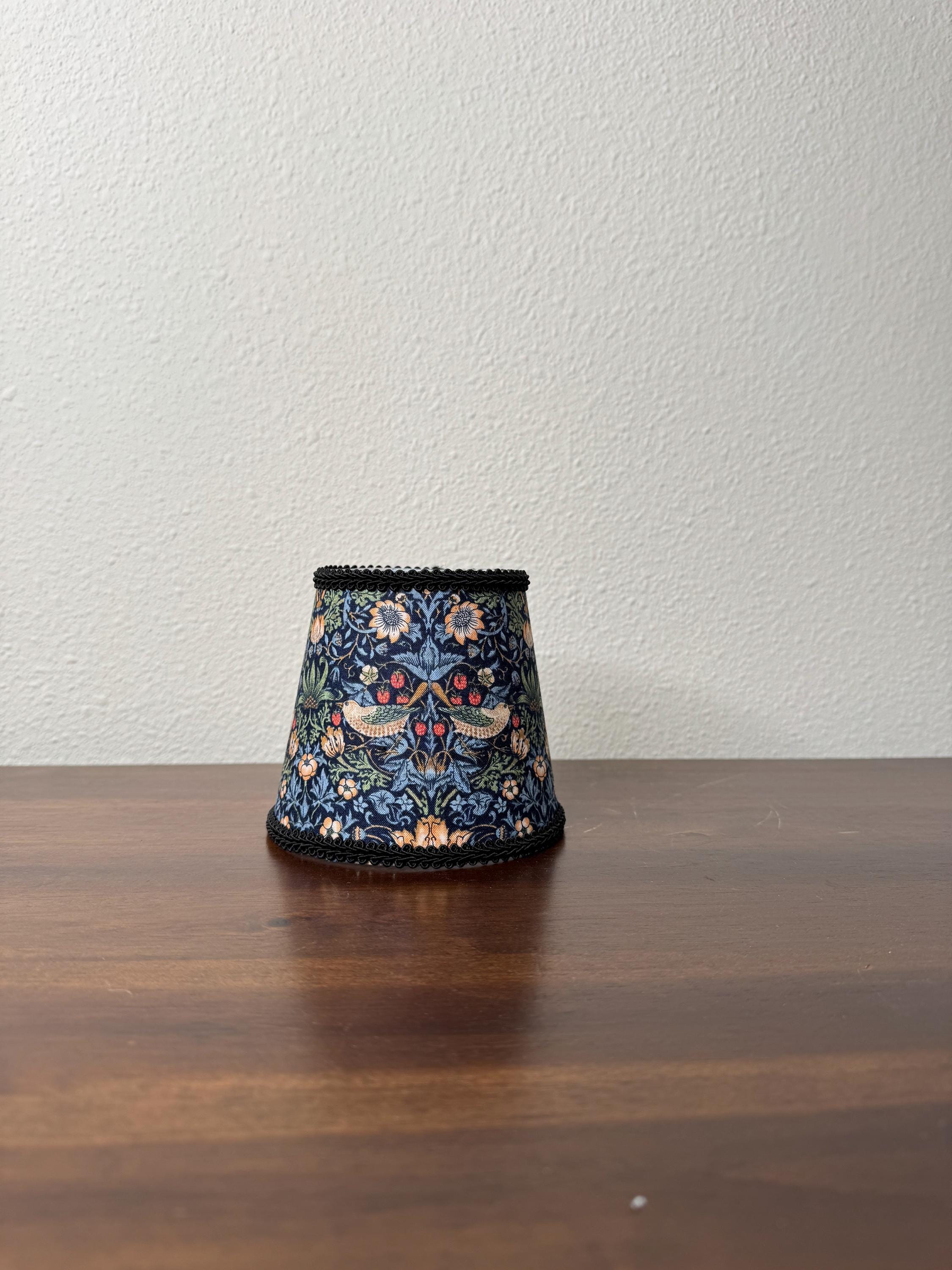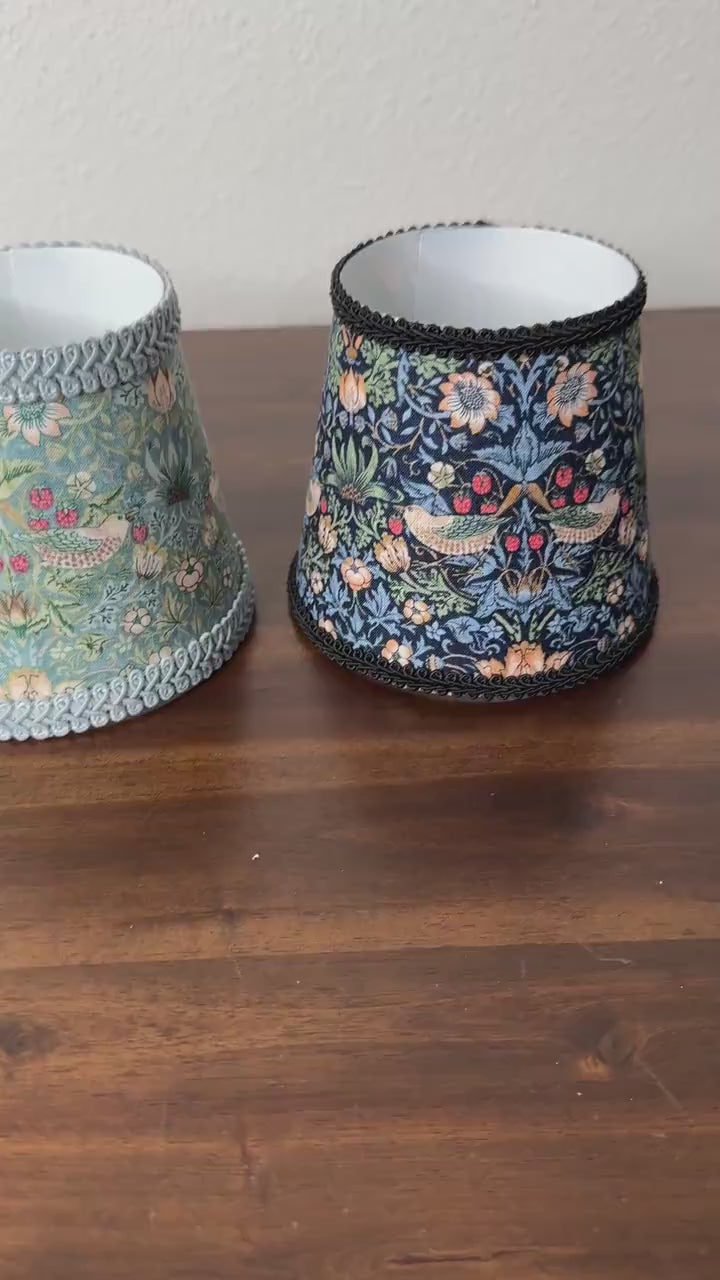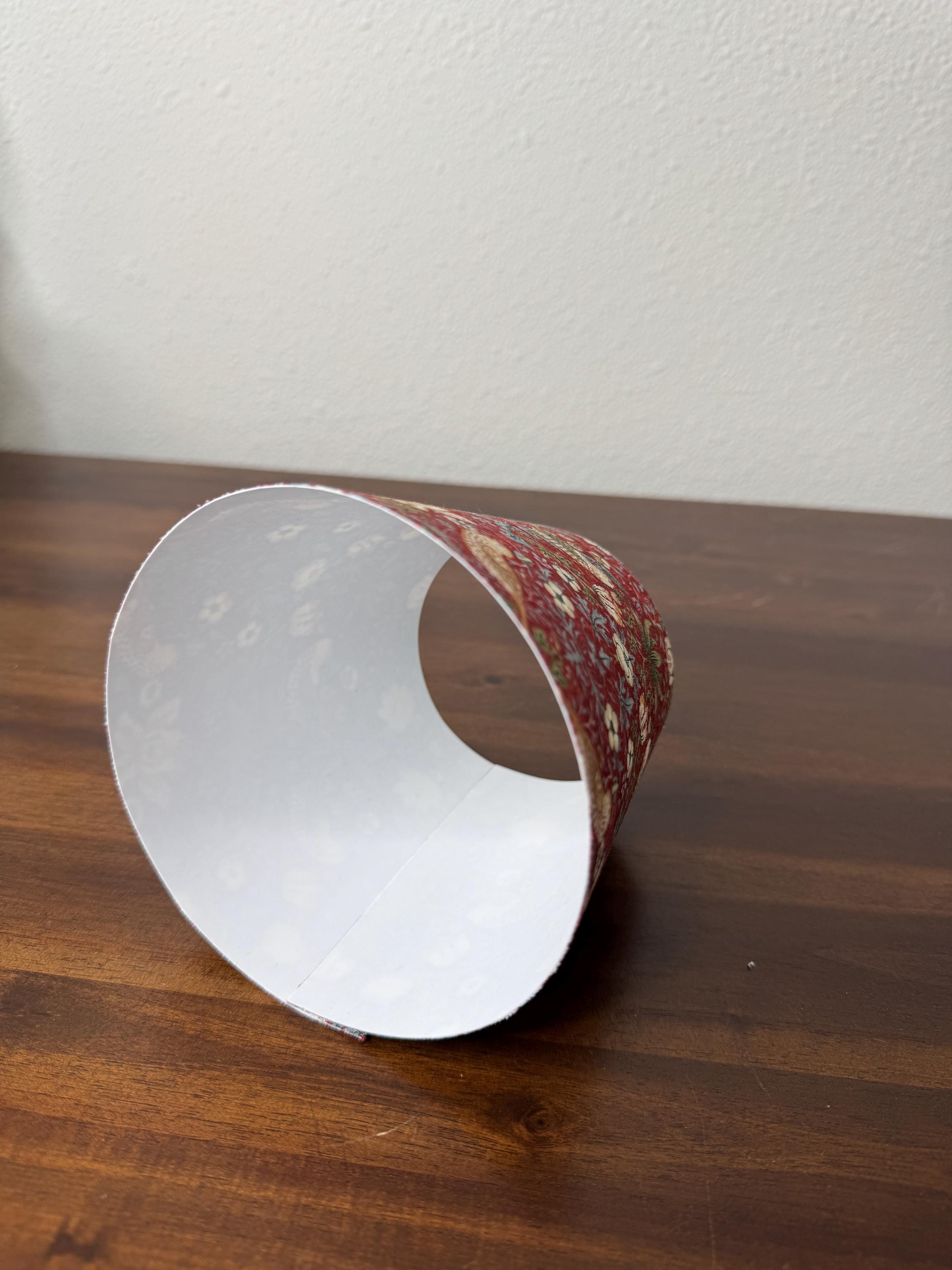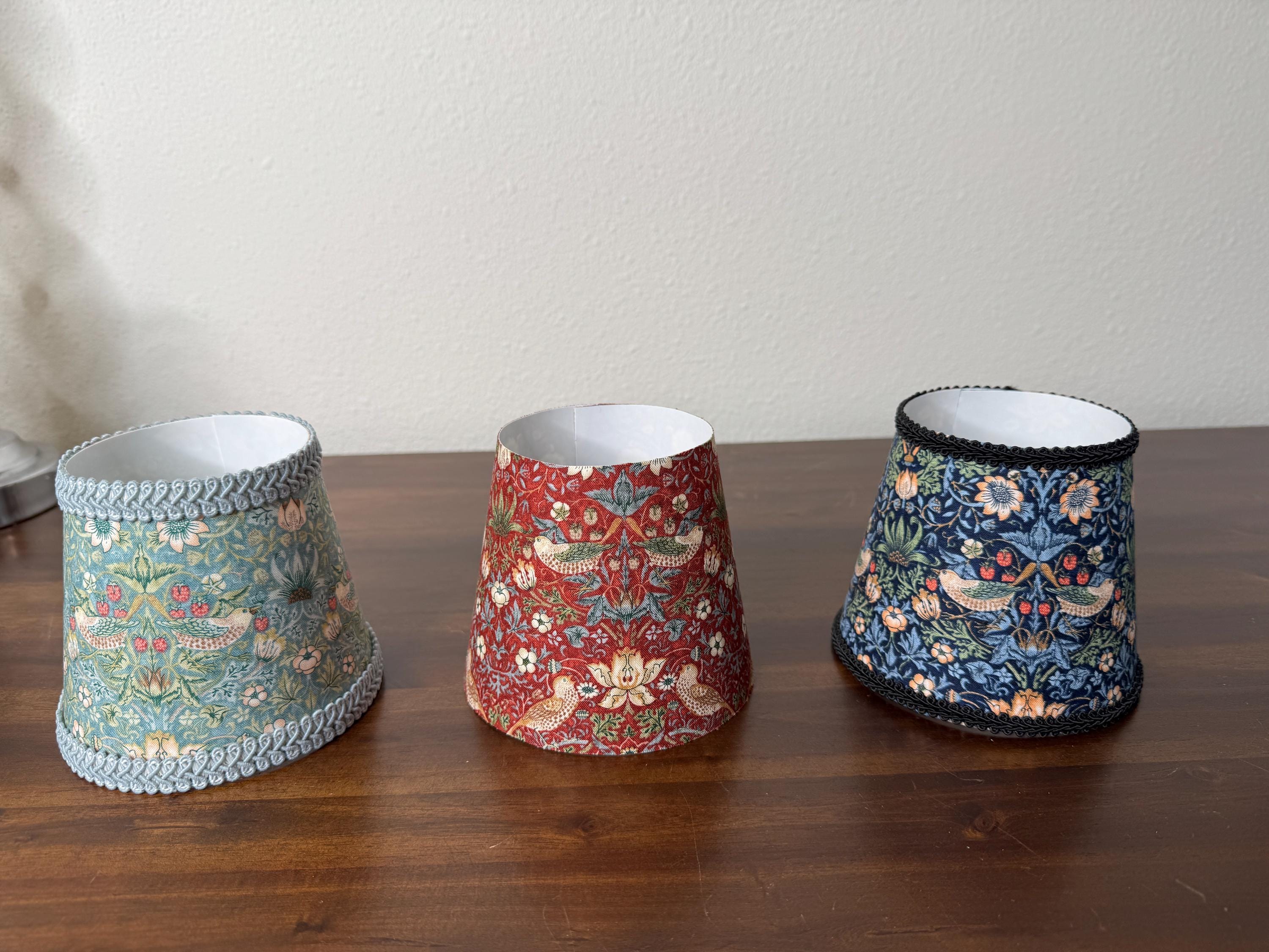 These stunning little sconce slip covers work great to elevate your existing mini LED lamp. They are slip covers only and do not have any structure to them, so no metal rings on the top or bottom diameter. They have an inner lining made of fire retardant PVC styrene and have fabric on the outer part.