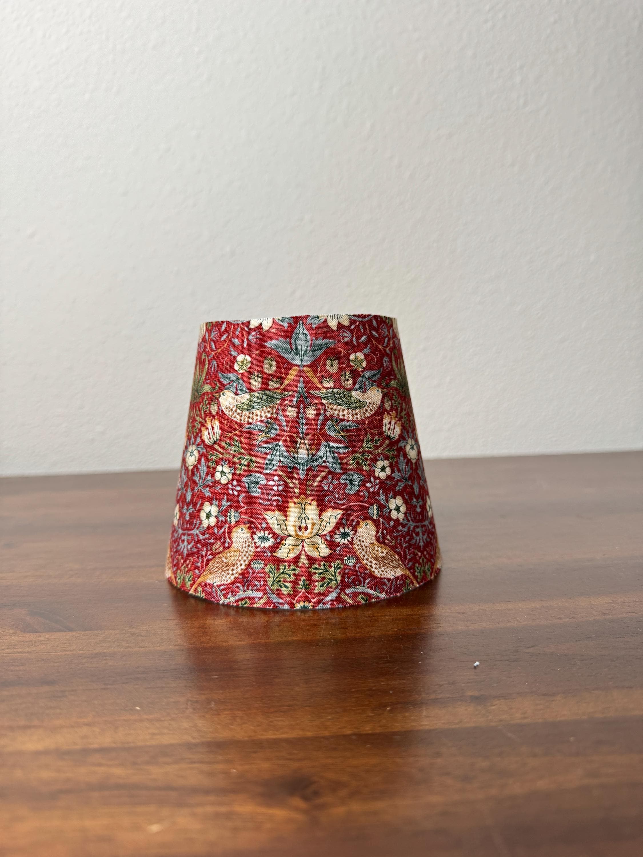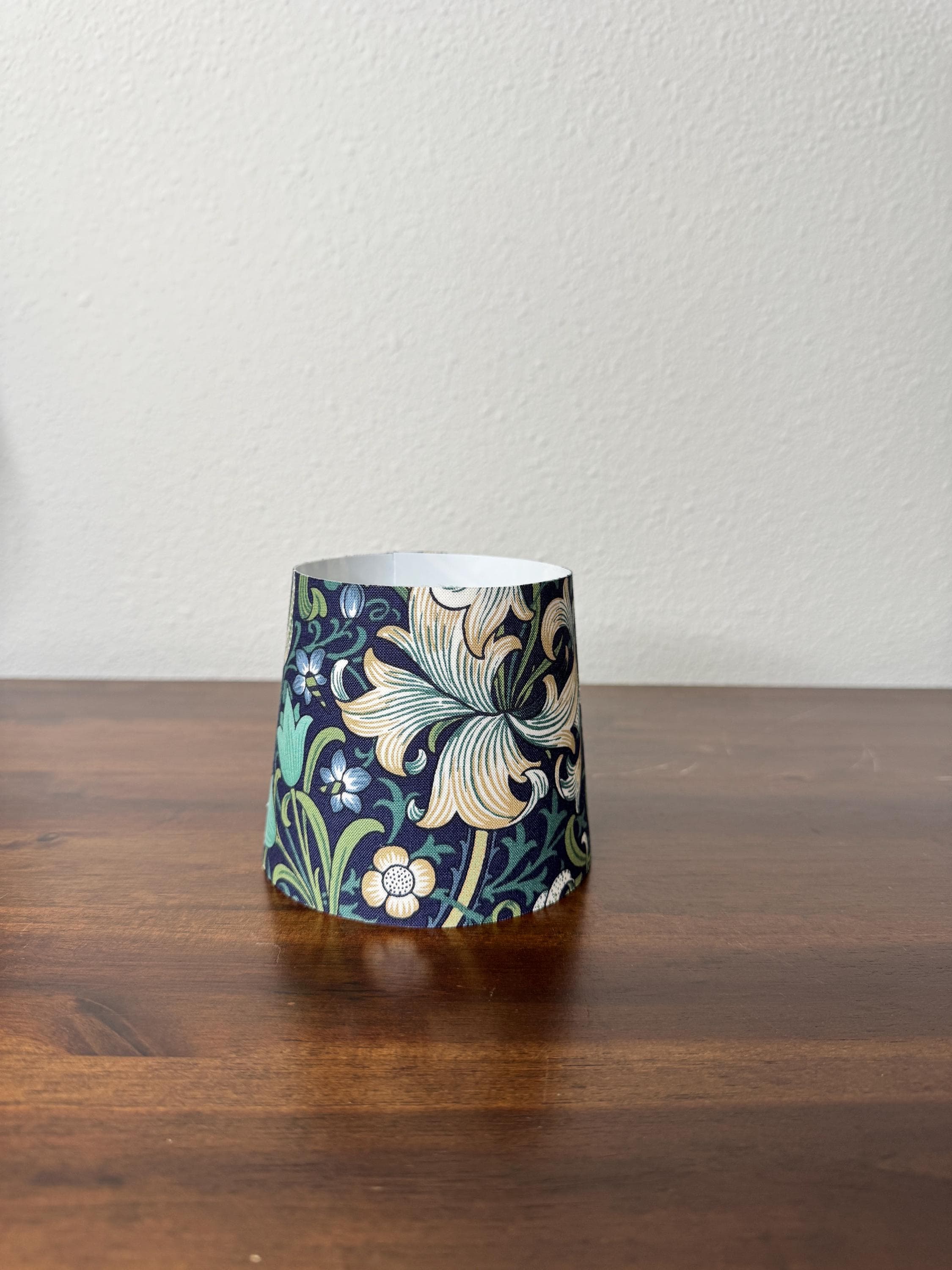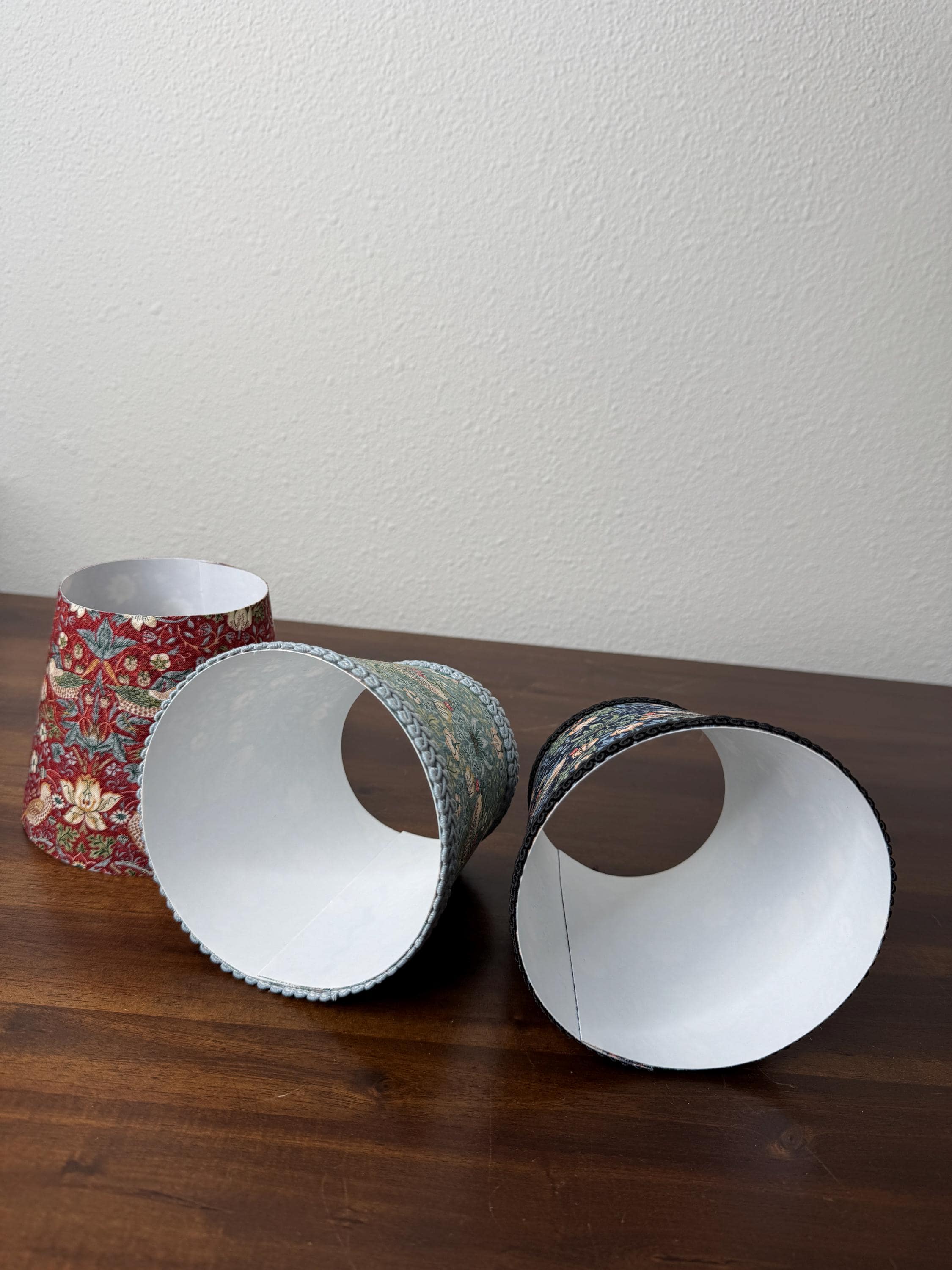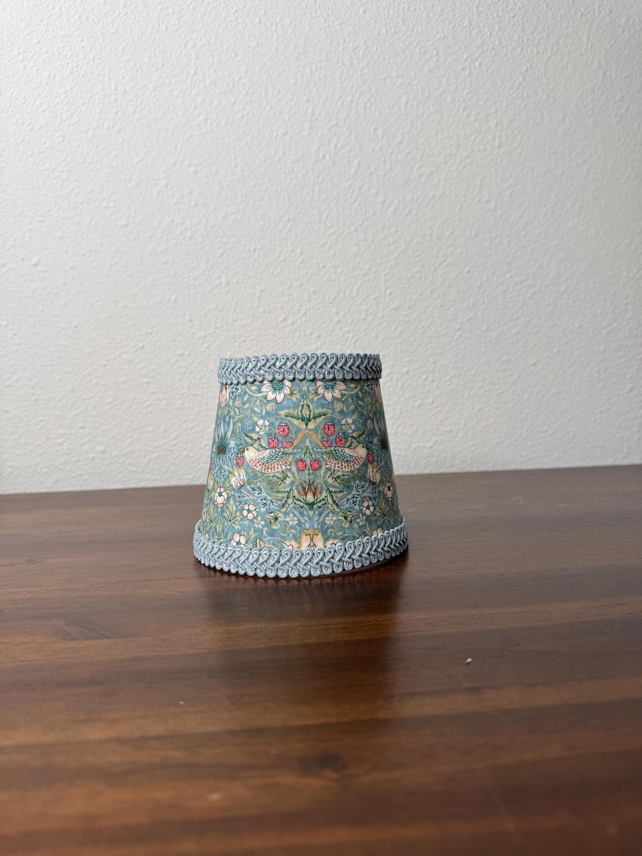 These stunning little sconce slip covers work great to elevate your existing mini LED lamp. They are slip covers only and do not have any structure to them, so no metal rings on the top or bottom diameter. They have an inner lining made of fire retardant PVC styrene and have fabric on the outer part.